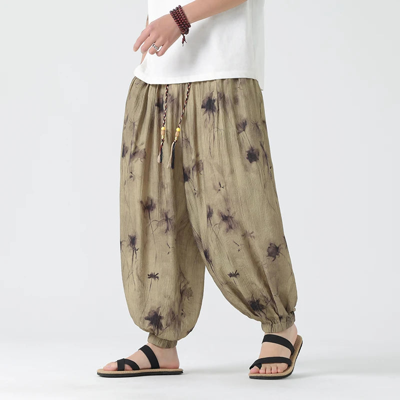 Streetwear-inspired jogger pants made with a lightweight polyester blend for a relaxed yet structured fit. Designed with unique braided drawstrings and elastic cuffs, they bring effortless style to warm-weather looks.